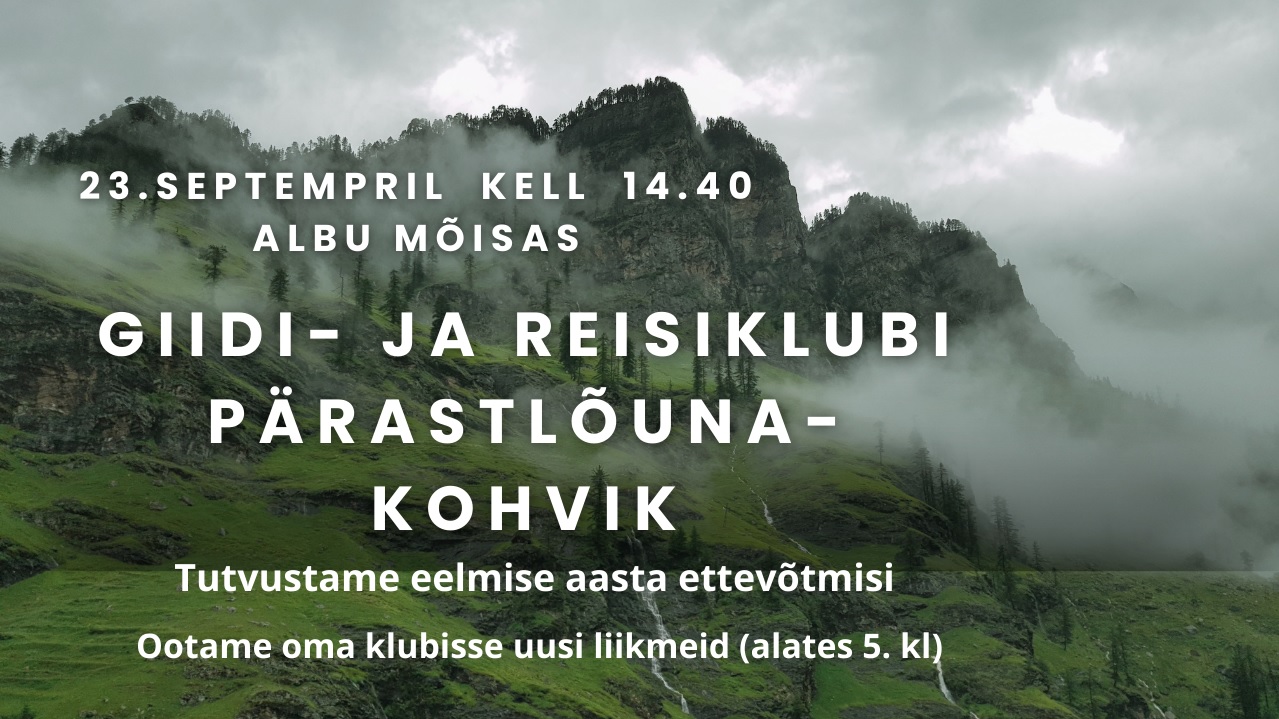 Giidi- ja reisiklubi ootab 23. september kell 14.40 kõiki kogukonnaliikmeid ja reisihuvilisi Albu kooli mõnusat pärastlõunat veetma. Saab maiustada kohvikus ja tutvuda klubi eelmise aasta muljetega. Tule toeta oma osalemisega meie õpilaste ettevõtlikust.