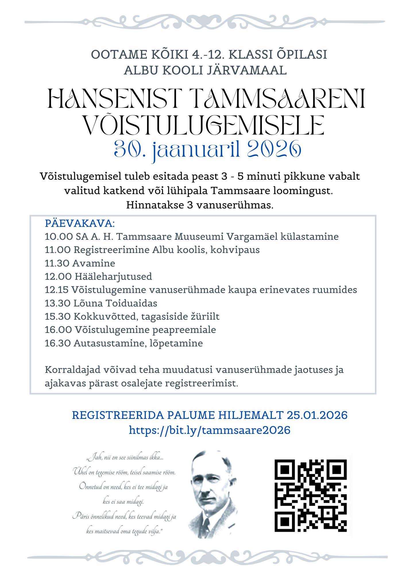 Palume võistlusele registreeruda hiljemalt 25. jaanuaril 2026. a