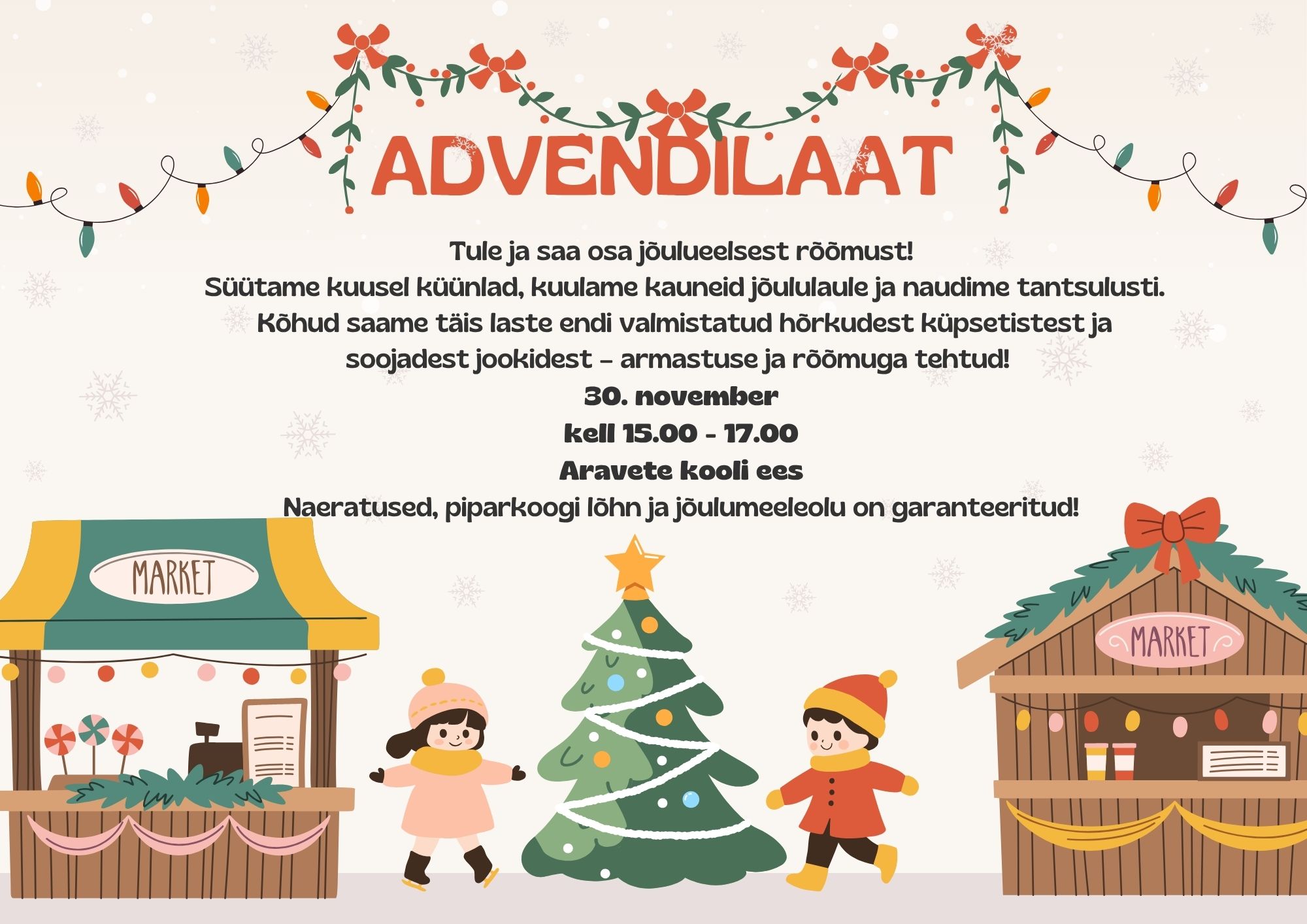 Tule ja saa osa jõulueelsest rõõmust! Aravete kooli ees 30. novembril kell 15.00- 17.00