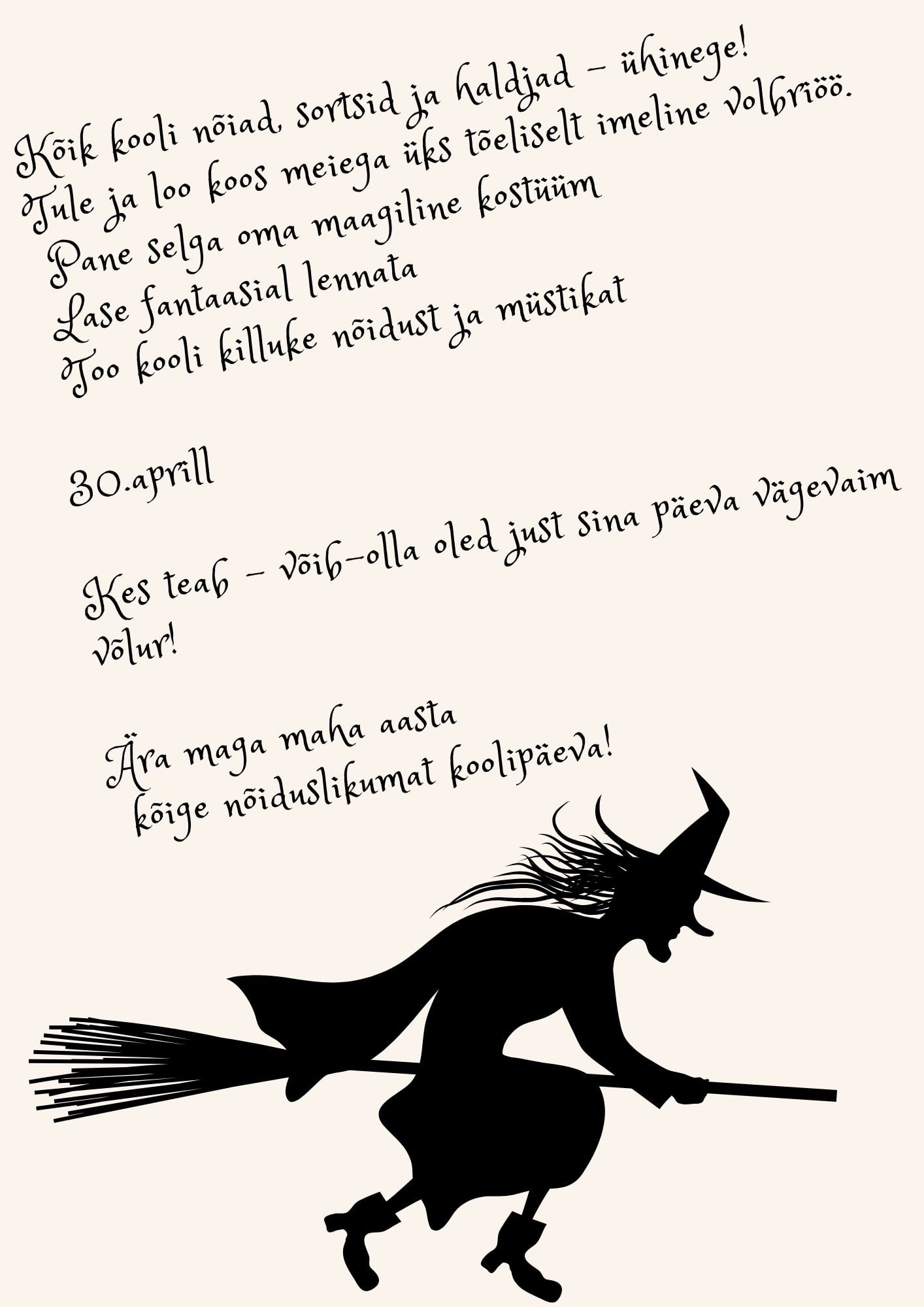 1 sündmus,28.04 1.-4. klassi õpilastele tuleb külla Piret Päär, kes jutustab nõia- ja kollijutte. |